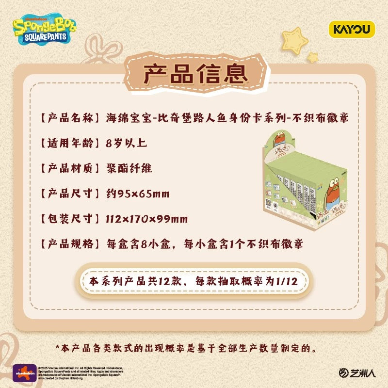 KAYOU SpongeBob Bikini Bottom - Mermaid Man & Barnacle Boy Identity Card Series Felt Badges | Official Authentic Merchandise One Full Box (Including 8 Mini Boxes)