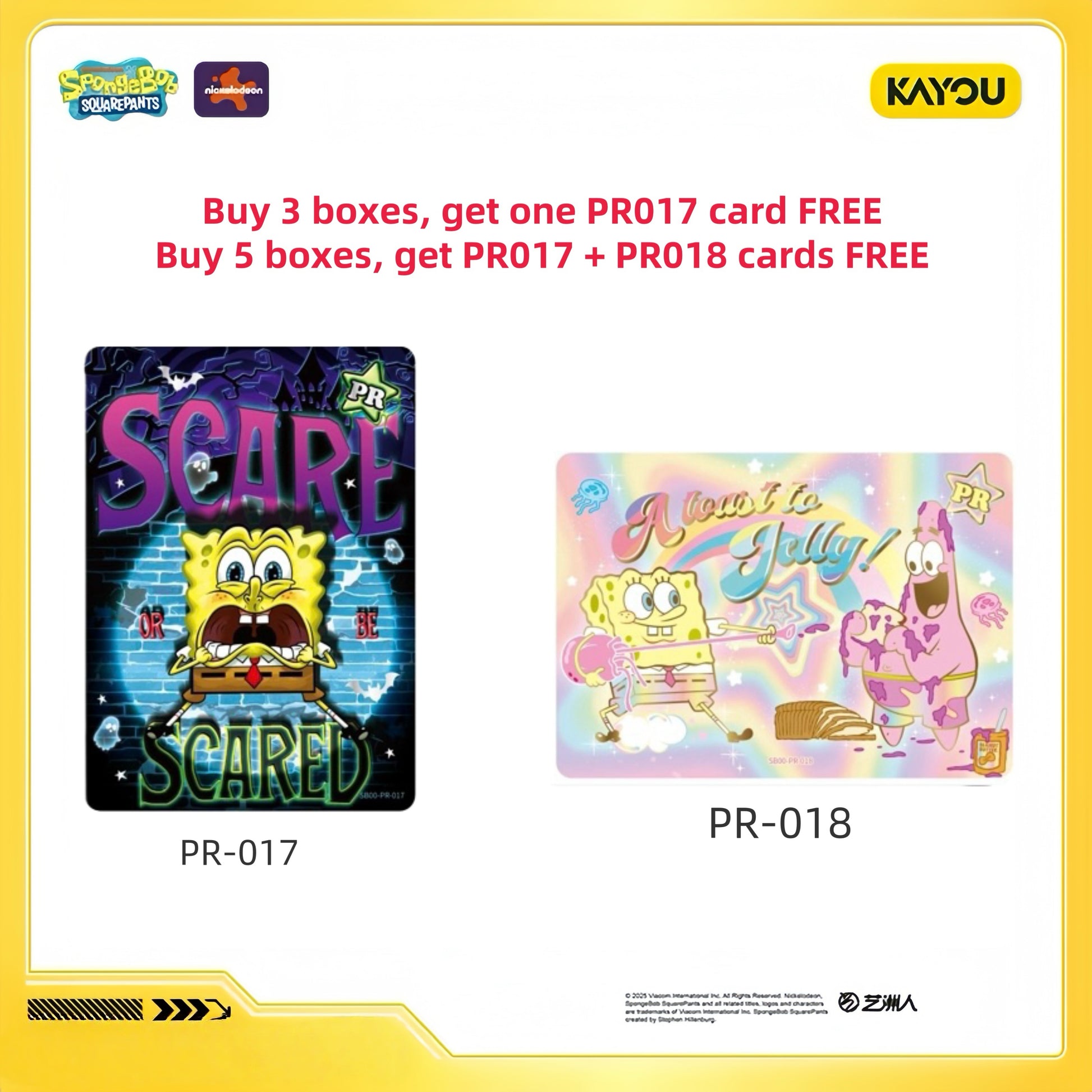 SpongeBob SquarePants - Fun Time Collectible Cards is an official licensed card product, developed by KAYOU, based on the classic comedy animation SpongeBob SquarePants. The cards feature iconic elements from the show—quirky items, dynamic expressions, and vivid illustrations. Crafted with exquisite, elegant artistry, these cards let you dive into the whimsical undersea world of Bikini Bottom alongside its residents as you collect, sharing joy with every fan!